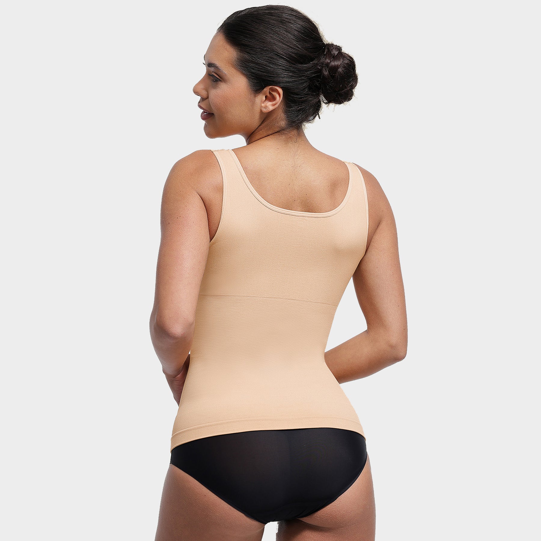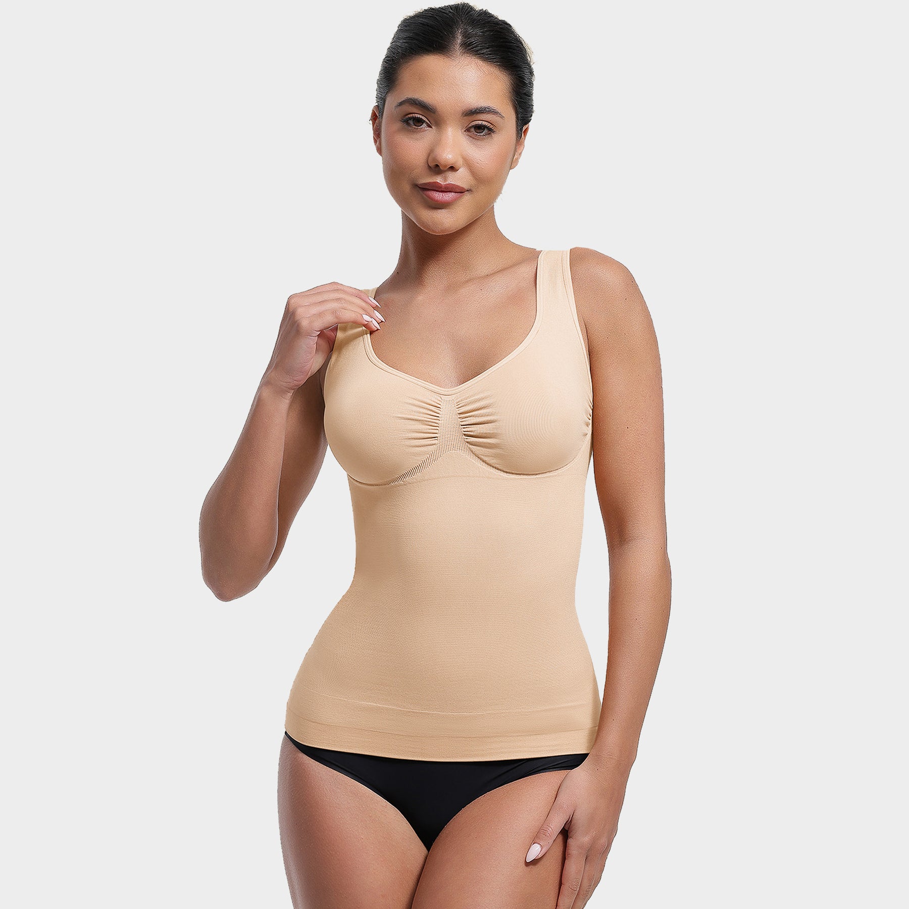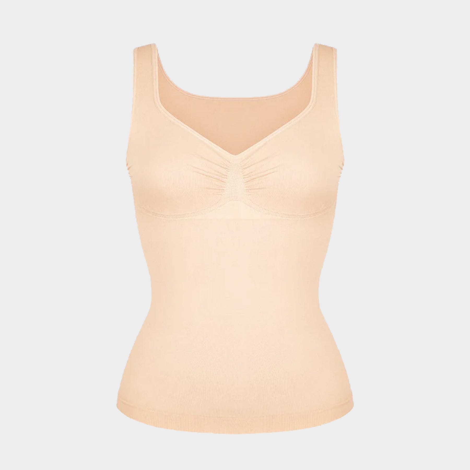 Denne sømløse shaping-toppen kombinerer støtte, komfort og figurforming i ett plagg.Toppen gir god støtte til bysten og en naturlig form, uten innebygd BH. Det myke og elastiske materialet gir lett shaping rundt mage og midje.Med sitt sømløse design er toppen usynlig under klær, og de justerbare stroppene gjør at du enkelt kan tilpasse passformen til din kropp. Et perfekt valg for deg som ønsker både komfort og hold-in effekt – hver dag.
