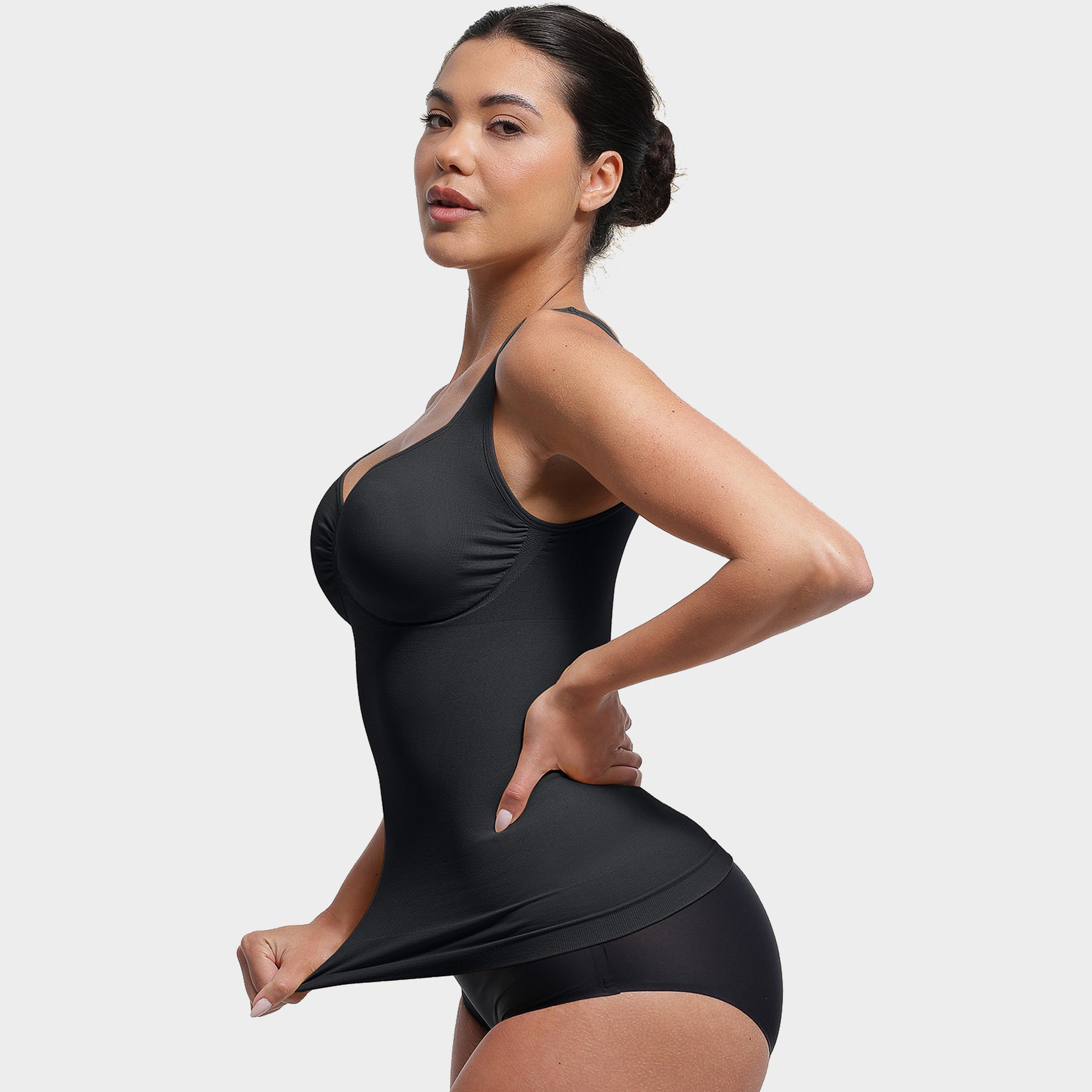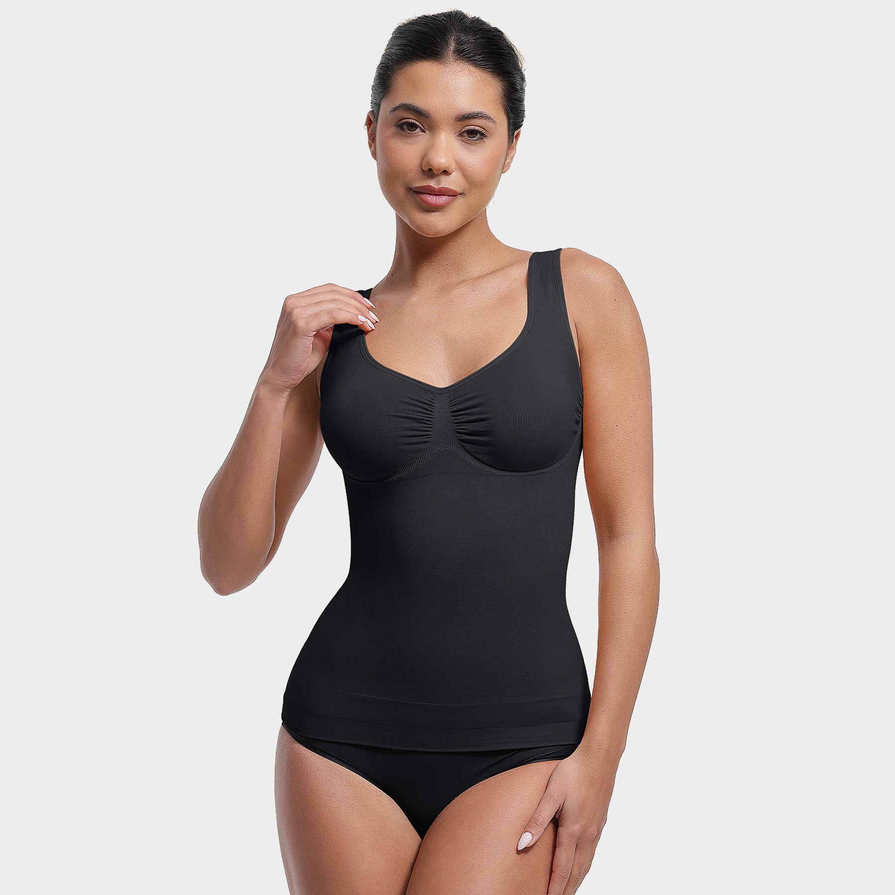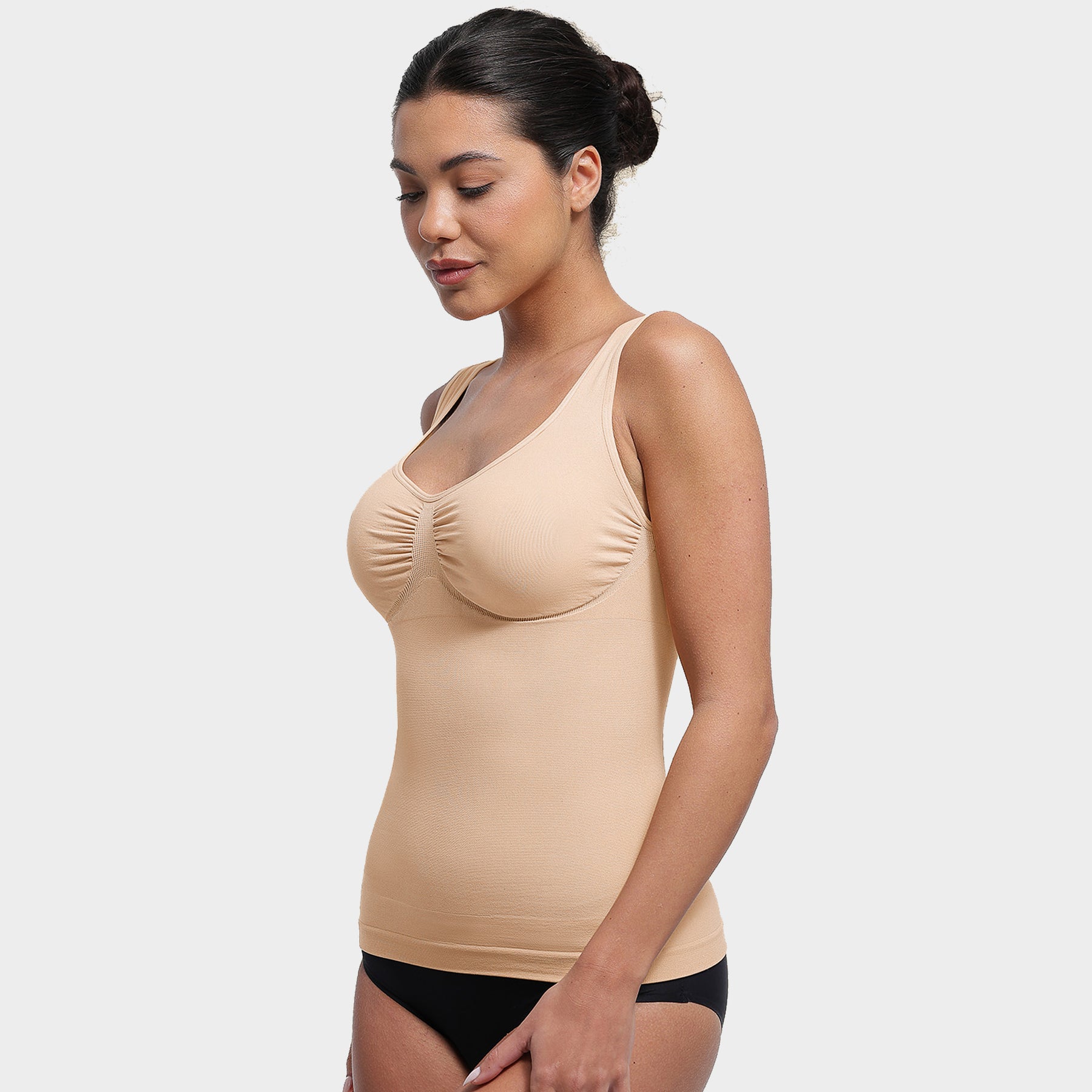Denne sømløse shaping-toppen kombinerer støtte, komfort og figurforming i ett plagg.Toppen gir god støtte til bysten og en naturlig form, uten innebygd BH. Det myke og elastiske materialet gir lett shaping rundt mage og midje.Med sitt sømløse design er toppen usynlig under klær, og de justerbare stroppene gjør at du enkelt kan tilpasse passformen til din kropp. Et perfekt valg for deg som ønsker både komfort og hold-in effekt – hver dag.